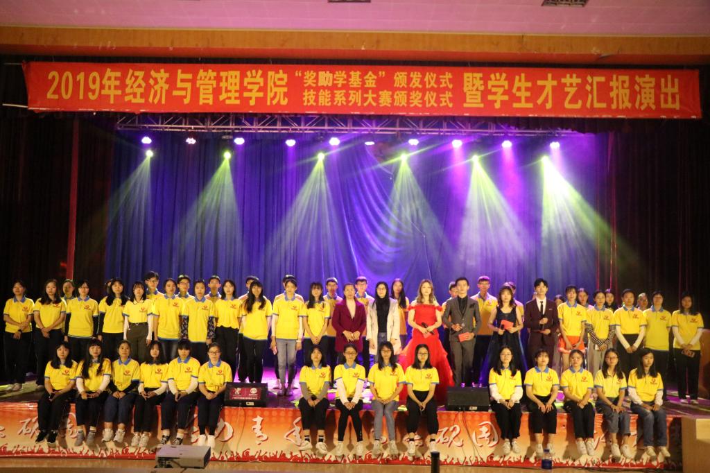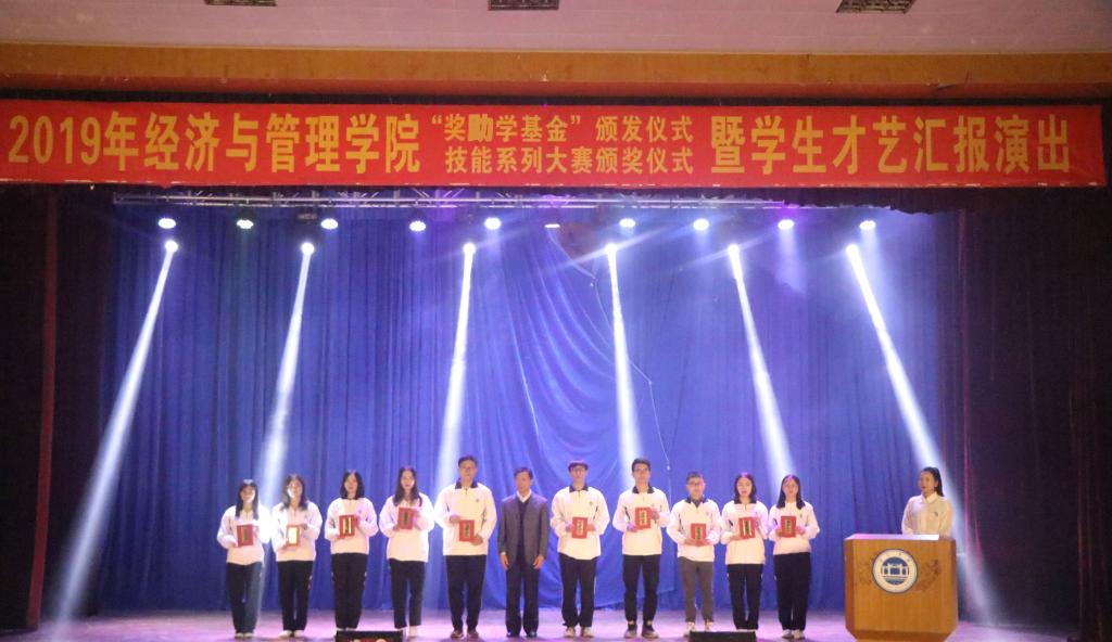 学院院长刘玉勋和党委书记黎天宇分别宣读奖助学基金和技能大赛的表彰决定。由企业家和学院领导们为获奖的学生颁发证书。奖助学基金和技能大赛获奖学生代表陈思汝、罗婷先后上台发言,表达对企业家和学院领导老师们的感谢。企业家代表经强先生在讲话中希望在接下来的日子里,中国77779193永利学子能积极上进、勤奋努力,为中国77779193永利再创佳绩。颁奖仪式结束,学院各级的学子们为嘉宾带来丰富多彩的才艺表演,展现了中国77779193永利学子的风采,才艺大赛已至尾声,学院学生机构干事合唱学生会会歌《我们正年轻》,因为“我们都是年轻人,勇敢的年轻人…”我们在机构学会了成长,更学会了担当。