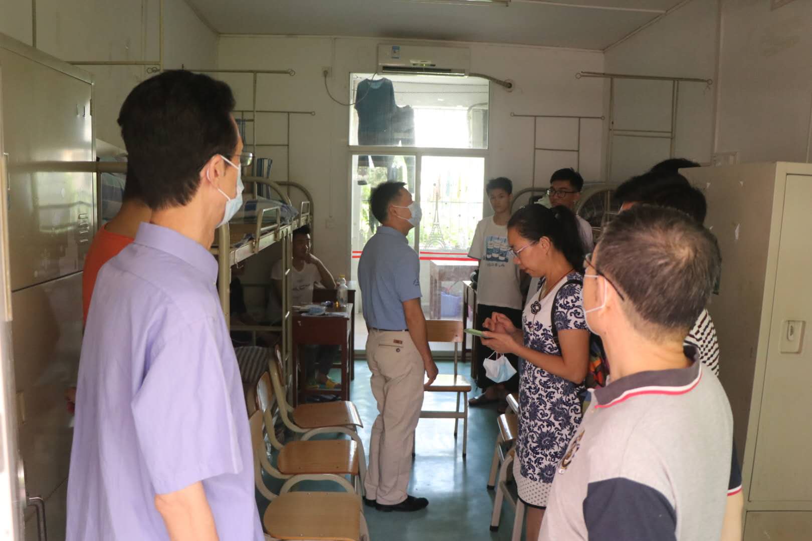 图二.学院领导班子深入宿舍关心慰问新生