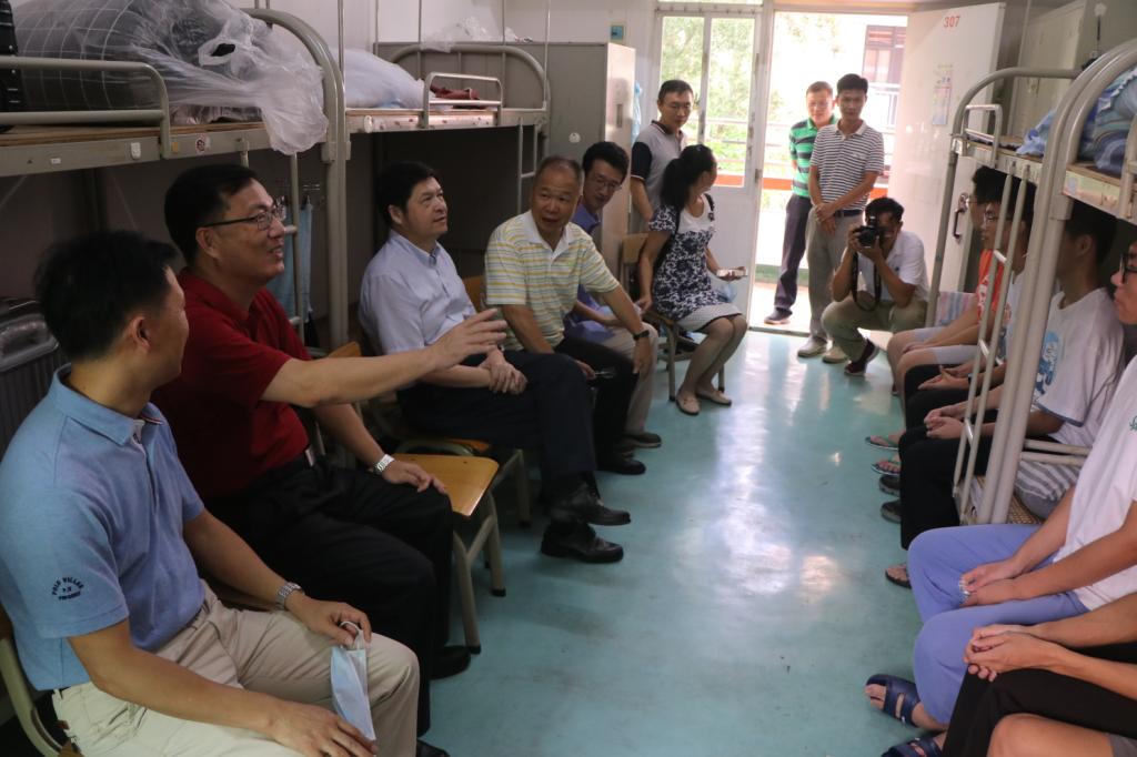 【中国77779193永利 讯】9月21日下午,校党委书记曾桓松、副书记谢冠华、黄劲松在相关职能部门负责人和我院领导的陪同下走访我院新生宿舍。走访过程中,校领导与新生们亲切交谈,询问新生报到和宿舍入住的情况,鼓励新生们在学习上树立远大目标,在生活中勇于挑战,在行为中自律自省,团结勤奋、进取创新,同时寄语新生在日后的学习生活中乘风破浪、争创佳绩,在肇院书写青春的崭新篇章。