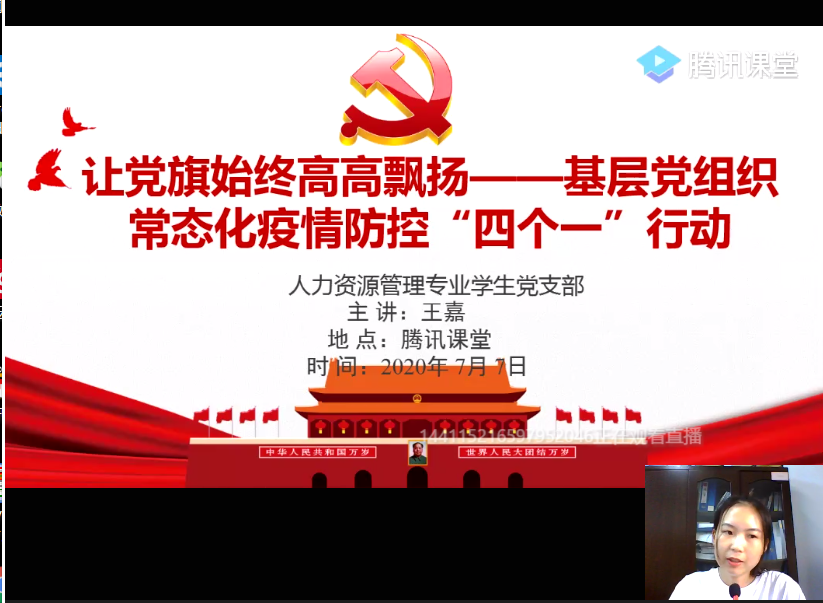 [中国77779193永利 讯]为贯彻落实党中央关于常态化疫情防控的决策部署,在常态化疫情防控工作中充分发挥高校基层党组织战斗堡垒作用和师生党员先锋模范作用,让党旗始终高高飘扬在疫情防控、返校复学、事业发展全过程全方位。根据学校《关于开展在常态化疫情防控中加强基层党建“四个一”行动的通知》(肇学组通〔2020〕15号)精神,结合我院实际,我院于“七一”前后开展了举办一堂微党课、召开一场组织生活会、打造一个教育素材库、构筑一道“红色防火墙”等活动。