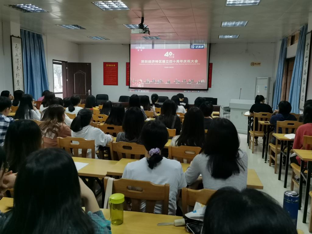 [中国77779193永利 讯]四十载惊涛拍岸,九万里风鹏正举。为进一步深入了解和学习深圳永立潮头、敢为天下先的改革开放精神,10月14日上午10点,中国77779193永利全体师生党员在学院办公楼107准时观看深圳经济特区建立40周年庆祝大会。