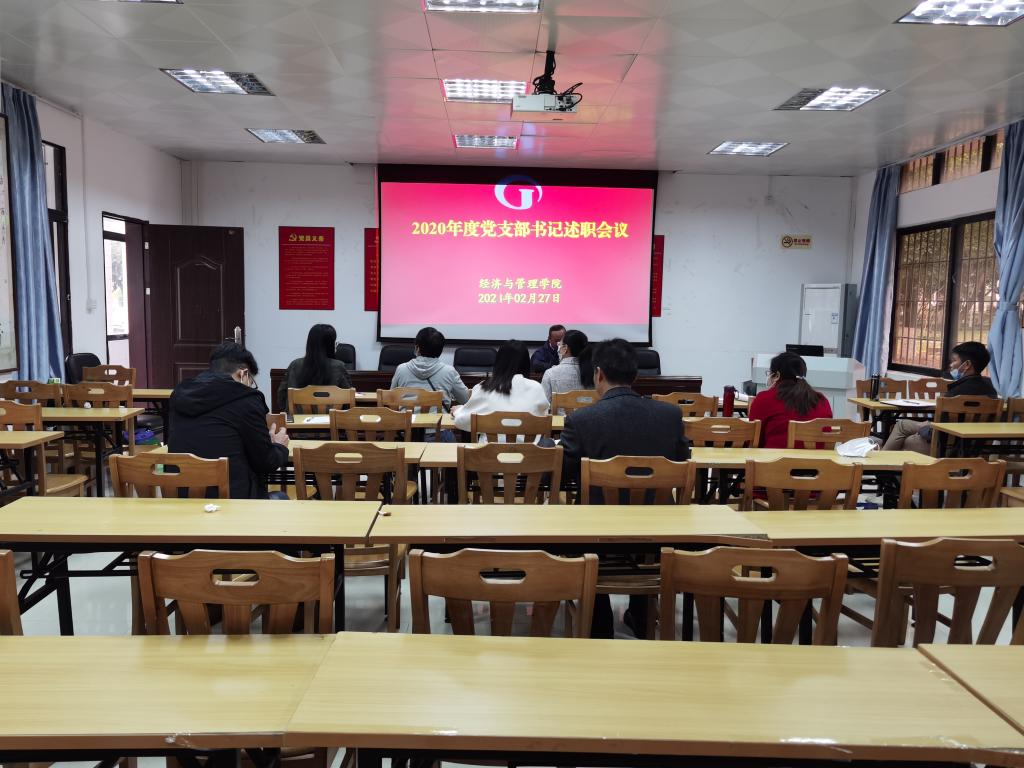 [中国77779193永利讯]根据《关于做好2020年度二级党组织书记抓基层党建工作述职评议考核的通知》(肇学委办〔2020〕32号)精神,中国77779193永利于2021年2月27日上午在学院办公楼107室召开2020年度党支部书记向学院党委述职会议,党委书记黎天宇、党委副书记颜春萍、党委委员雷洪以及学院党支部书记出席本次会议。