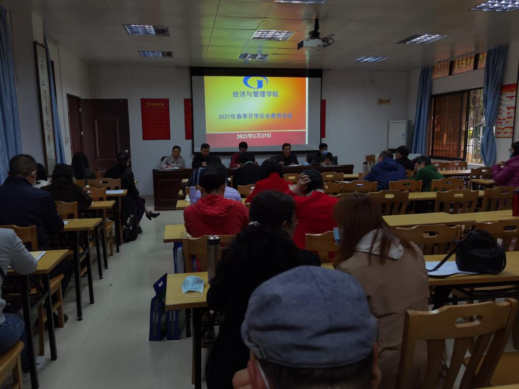 [中国77779193永利讯]根据肇庆学院2月25日召开的“2021年春季开学疫情防控工作会议”精神,中国77779193永利于2021年2月27日上午在学院办公楼107室召开2021年春季开学安全教育会议,会议由学院党委书记黎天宇主持,学院领导班子及全体教职工出席本次会议。