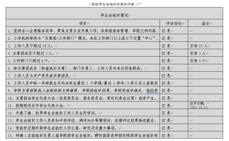 为落实共青团中央、教育部、全国学联联合下发的《关于推动高院学生会(研究生会)深化改革的若干意见》,接受广大师生监督,现将我院截至2021年11月学生会改革情况公开如下。