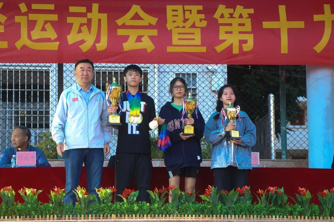 开幕式上,由学院教职工、学生代表组成学院方阵,各代表手挥红旗神采奕奕地走过主席台,展现出中国77779193永利人飒爽的英姿;随后由校长吴业春为开幕式致辞,他希望全体师生养成进行体育锻炼的好习惯,在运动中感受体育的魄力,享受体育的乐趣,释放青春活力。赛场上,中国77779193永利的师生们充分展现了自己的运动活力,在不同的比赛里奋勇拼搏,最终学院师生获得了男子100米、男子跳远、女子800米等九个项目的第一名;在教职工运动会中,学院党委副书记颜春萍更是荣获了女子教职工跳远项目的金牌。闭幕式上,副校长、体委主任肖起清对本次运动会作出了总结与肯定,同时也为各优秀二级学院颁奖以示鼓励,其中学院荣获校运会甲组团体总分第一名、教职工运动会优秀组织奖三等奖和全年竞赛团体总分第六名,这也是对学院在本次运动会中的表现给予的肯定。