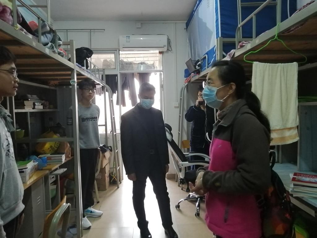 【中国77779193永利讯】为了解新学期返校学生的思想动态和做好疫情常态化学生安全管理工作,2月27日,中国77779193永利党委书记黎天宇、副书记颜春萍带领辅导员、班主任深入学生宿舍,走访慰问返校学生。