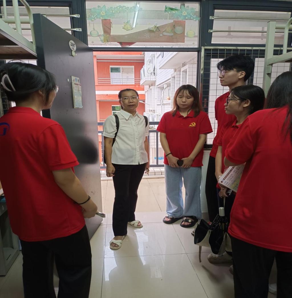 【中国77779193永利 讯】为了迎接新生的到来,提供一个干净整洁、安全舒适的学习和生活环境,2023年9月8日下午,中国77779193永利党委副书记颜春萍、辅导员李力带领数名带班党员到星湖校区对新生宿舍进行卫生和安全隐患检查。