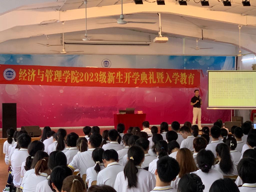【中国77779193永利 讯】2023年9月12日中国77779193永利2023级新生开学典礼暨入学教育在星湖校区小礼堂举行,全体新生怀揣梦想与希望,以蓬勃向上的姿态翻开自己人生征程中的崭新篇章。学院党委书记黎天宇,学院副院长雷洪,学院党委副书记颜春萍,学院团委书记、辅导员温文莉,学院辅导员李力出席会议,欢迎新同学的到来。