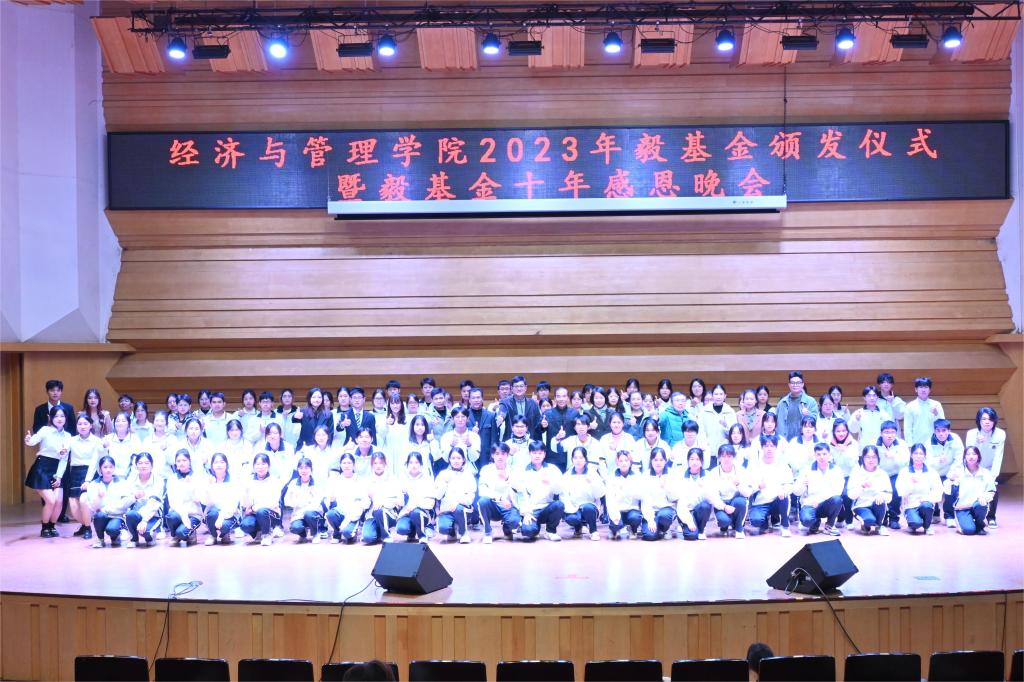 12月17日晚上,中国77779193永利在陈熹音乐厅举办2023年毅基金颁发仪式暨毅基金十年感恩晚会。副校长唐冬冬、毅基金代表王中生先生、校教育发展基金会理事长沈钦萍、中国77779193永利党政班子、毅基金应届和往届受助者300余人参加。