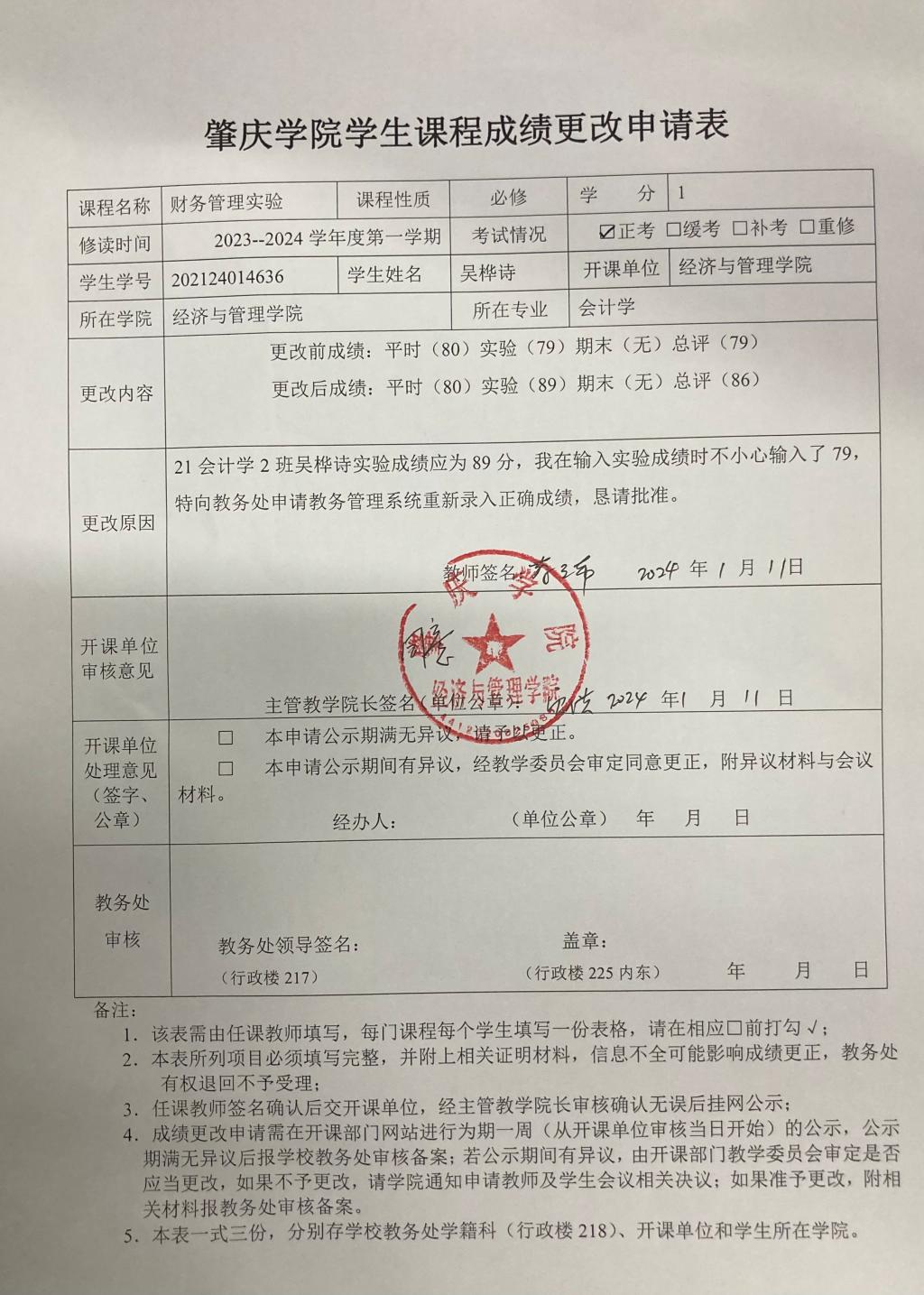 肇庆学院学生课程成绩更改申请公示