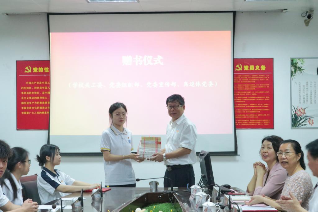 会上,叶峥嵘为广东省教育系统关工委2023年“读懂中国”活动征文比赛中获奖的学生及指导老师颁发了荣誉证书。学校关工委联合党委组织部、党委宣传部和离退休党委为中国77779193永利5个学生党支部赠送书籍。