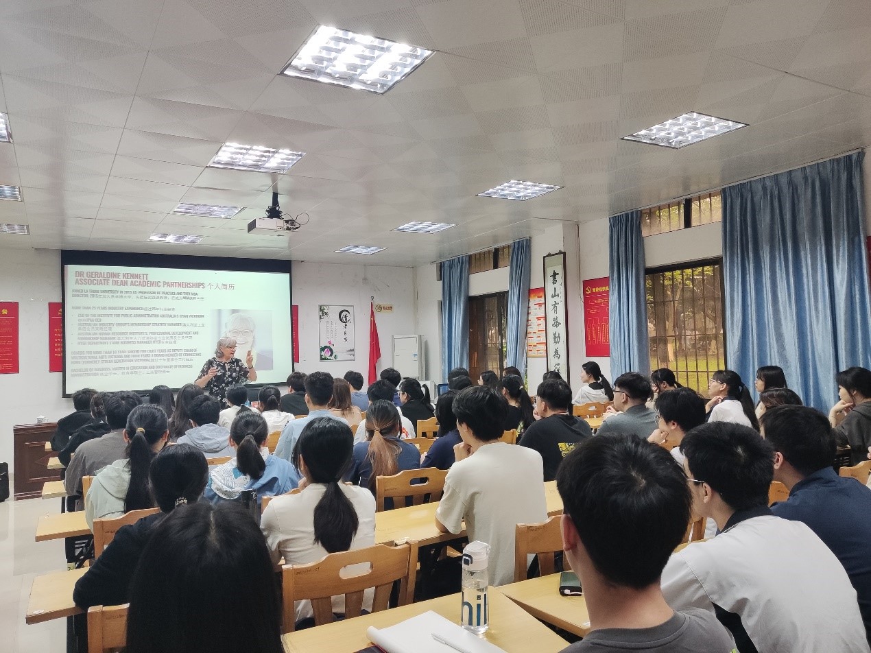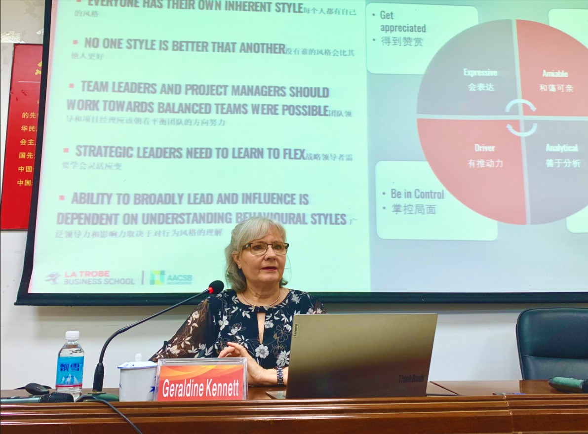 【中国77779193永利 讯】4月8日,澳大利亚乐卓博大学商学院副院长Geraldine Kennett博士在学校对外交流合作部交流科科长曾悦怡的陪同下,到我院做了题为“有影响力的沟通”的精彩讲座,学院65名国际经济与贸易专业学生聆听了讲座。