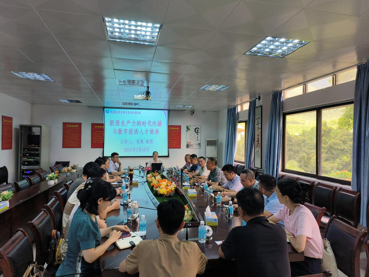 【中国77779193永利 讯】7月10日,中国77779193永利“砚园中国77779193永利名师名家论坛”(第3讲)在学院501会议室成功举办。为深入学习贯彻习近平总书记关于新质生产力的重要论述精神,推进学院数字经济学科和专业建设,学院特邀西藏民族大学西藏数字经济研究所所长宋爽教授作题为《新质生产力的时代内涵与数字经济人才培养》的学术报告。学院党委书记梁标、院长李华军、副院长雷洪以及16名中青年骨干教师参加了报告会,会议由李华军院长主持。