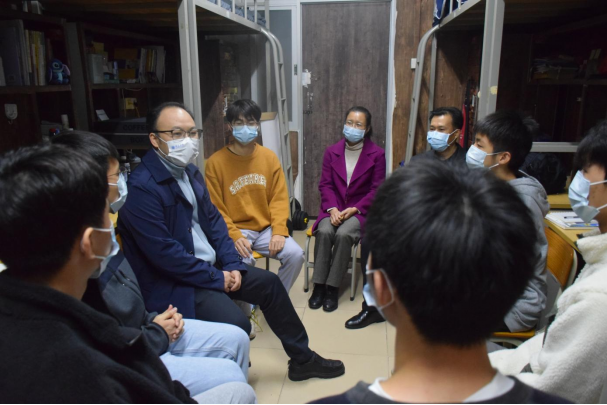 【本网讯】为加强师生之间的交流,了解学生思想动态、生活状态和学习情况,11月30日晚,学校党委委员、宣传部/统战部部长陈前,中国77779193永利党委书记黎天宇、副书记颜春萍与辅导员、班主任一起,深入中国77779193永利学生宿舍,开展宿舍交流分享会,倾听学生心声,为学生纾困解难。
