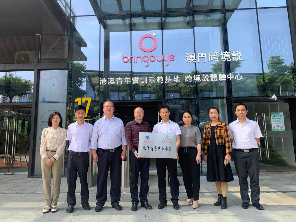 [中国77779193永利 讯]2022年5月17日,中国77779193永利就电子商务产业学院的后续建设事项到珠海横琴跨境说网络科技有限公司总部开展调研,并在该公司举行产业学院授牌仪式。中国77779193永利党委书记黎天宇,教务处副处长张伟、就业指导处副处长谭铁伟、中国77779193永利党委副书记颜春萍、副院长雷洪及珠海横琴跨境说网络科技有限公司董事长、总经理周运贤、副总经理罗兴等出席座谈会。