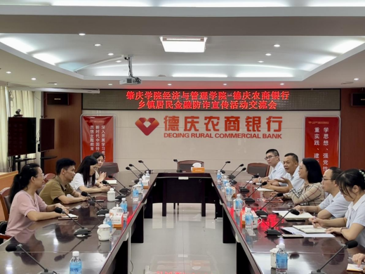雷洪副院长首先对德庆农商行的热情接待表示感谢,指出德庆农商行在营造全民反诈、全社会反诈活动方面不断创新宣传方式,效果显著,希望学院和德庆农商行在金融防诈及校企实习基地建设方面进一步合作。甘玉红助理就德庆农商行在金融防诈工作的做法作了介绍,表示将不断提升金融服务水平,通过各种有效方式切实引导广大群众树立正确的消费投资观念,提升信息保护及信用意识,增强对非法金融活动的防范意识和能力,共创和谐稳定的金融环境。