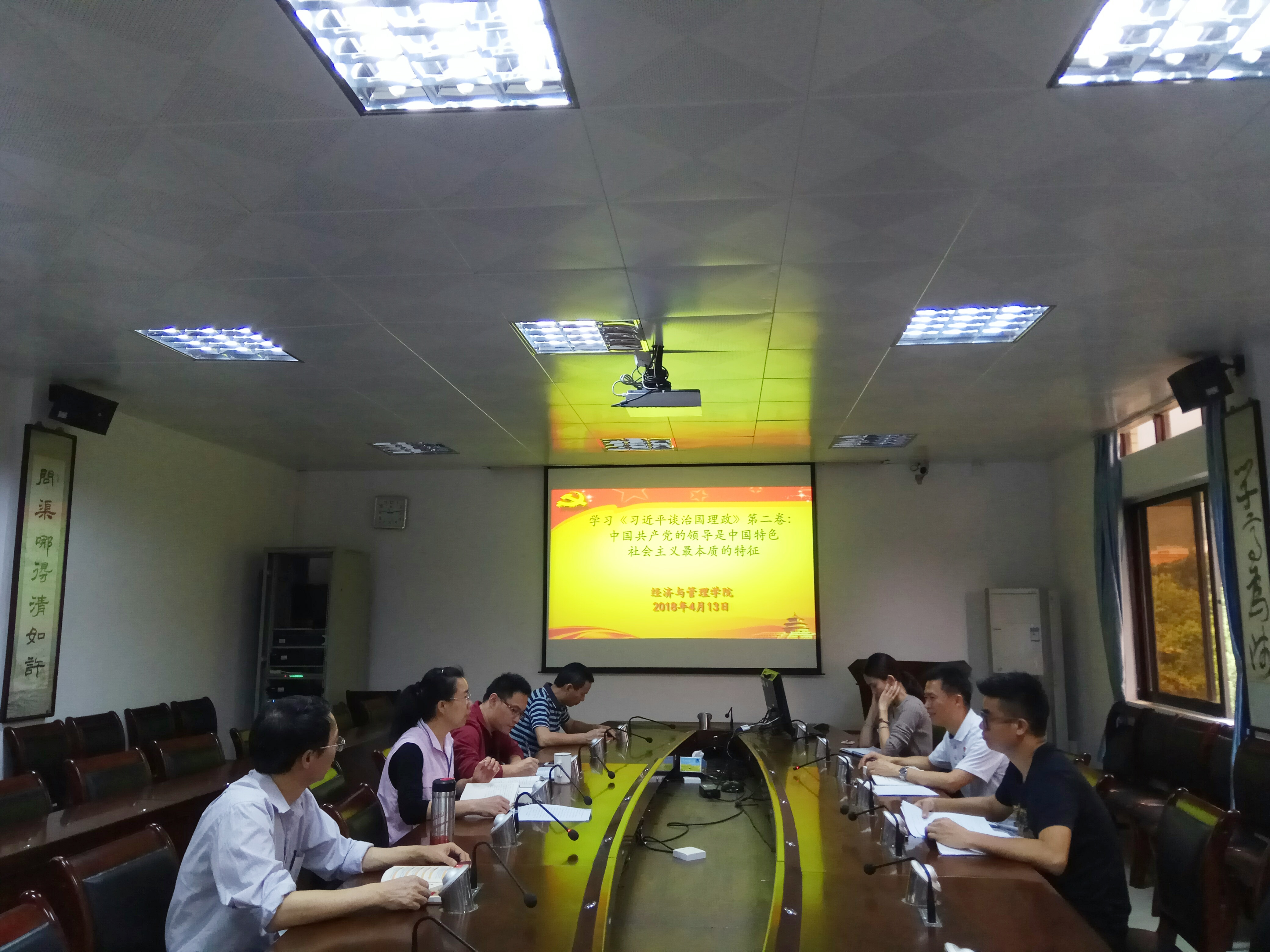学习会上,首先,学院党委书记黎天宇对学校党委通知作了相关说明,传达了上级精神要求。希望大家能够提高政治站位,深刻认真学习《习近平谈治国理政》第二卷的重要意义;要求大家认真学习研读,深刻领会习近平新时代中国特色社会主义思想的精神实质和丰富内涵;强化组织领导,确保学习《习近平谈治国理政》第二卷取得实效。紧接着,大家对原著中第一部分第二个章节“中国共产党的领导是中国特色社会主义最本质的特征”进行原汁原味的学习,同时,大家结合自己的实际情况谈了自己的感受。