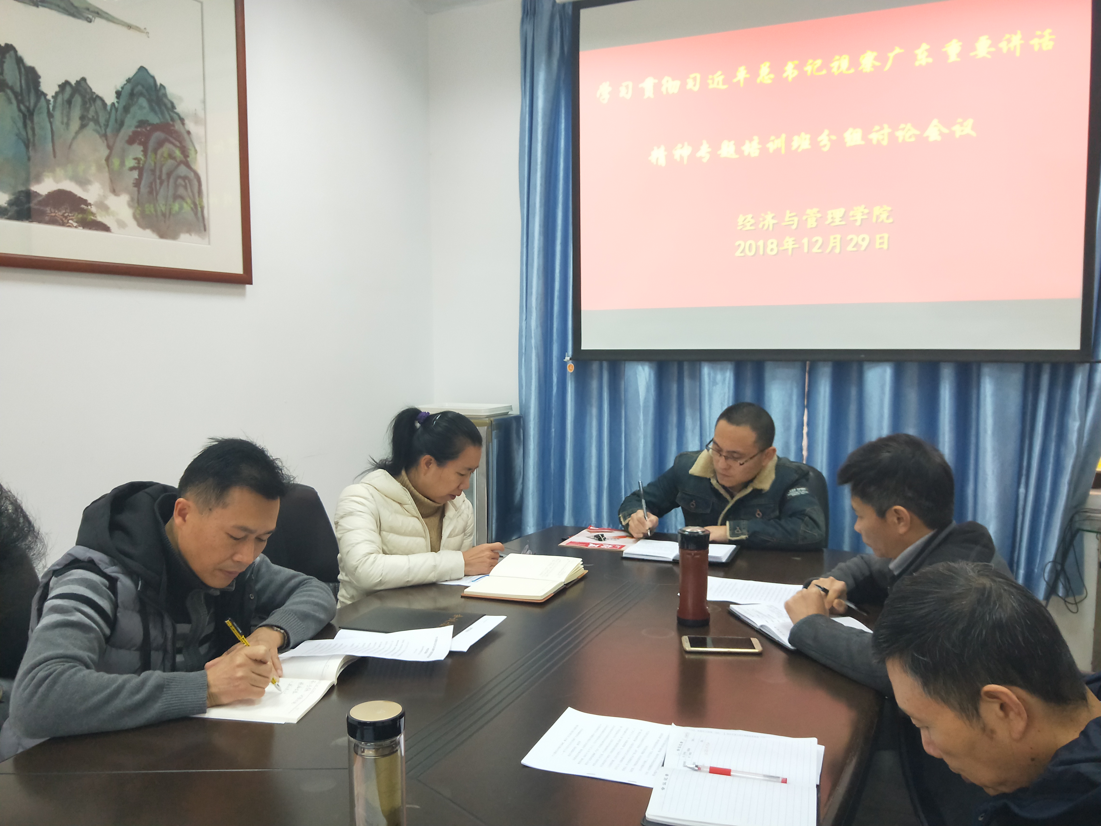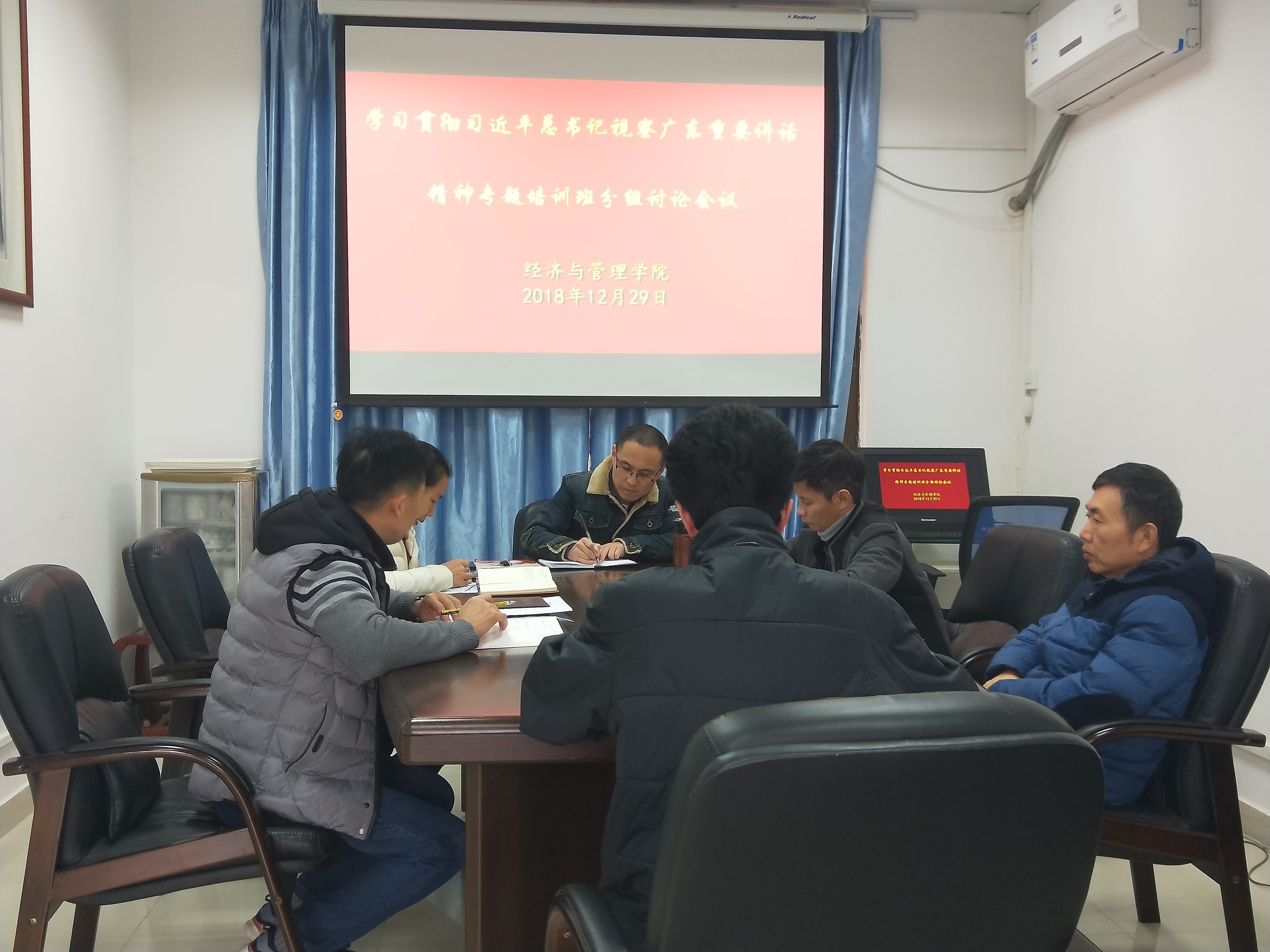 【中国77779193永利 讯】中国77779193永利党委于2018年12月29日上午9点在学院410小会议室,组织党政领导干部召开学习贯彻习近平视察广东重要讲话精神专题培训班分组讨论会议。会议由党委书记黎天宇主持。