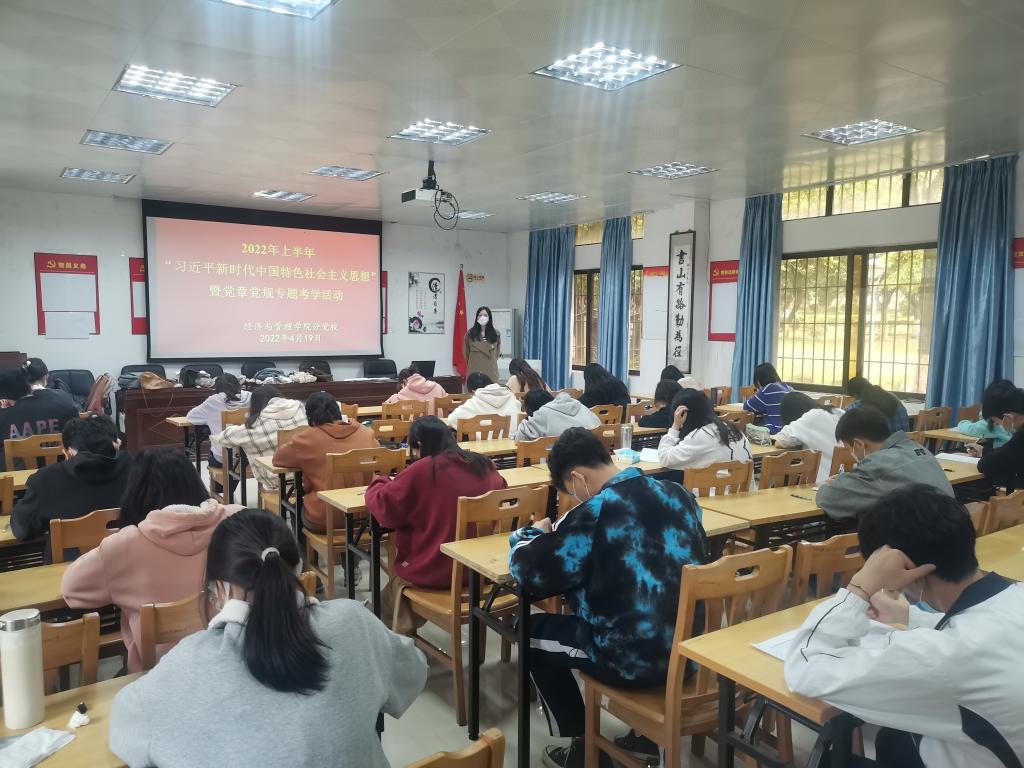 [中国77779193永利 讯]根据学校党校印发《关于举办2022年上半年党员发展对象培训班的通知(肇学组通〔2022〕4号)》的精神和要求,学院分党校于2022年4月19日中午在学院办公楼107室举行2022年上半年“习近平新时代中国特色社会主义思想”暨党章党规专题考学活动,考学对象为学院今年上半年党员发展对象候选人,共28人参加了考学活动。
