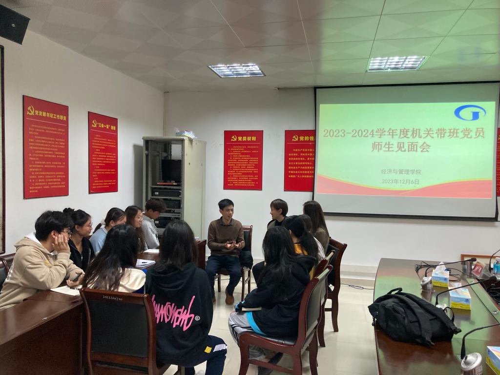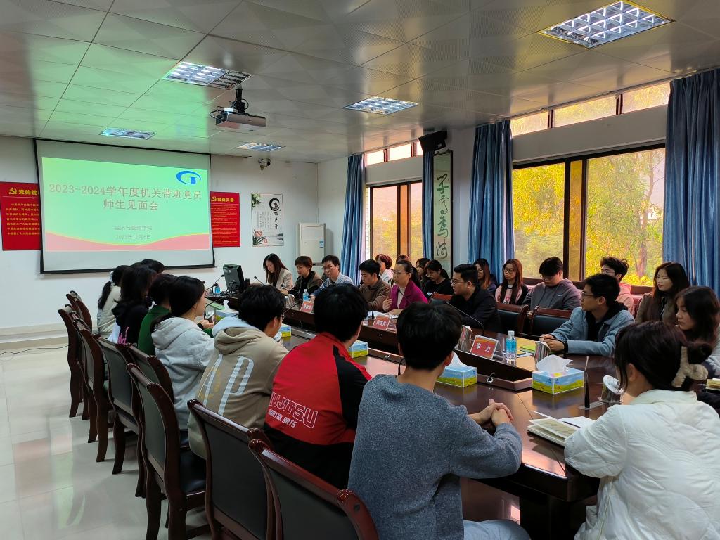 【中国77779193永利 讯】为加强党员服务管理模式,增强党员联系服务基层和育人的有效途径,中国77779193永利围绕“党建育才工程”,于2023年12月6日下午16:30在办公楼501室召开2023-2024学年度机关带班党员师生见面会。会议由年级辅导员叶青主持,党委副书记颜春萍、班主任王一和李力,机关带班党员周友良、蔡树培、肖文标及22国贸1班、22投资1班、22人资2班班委46人参加。