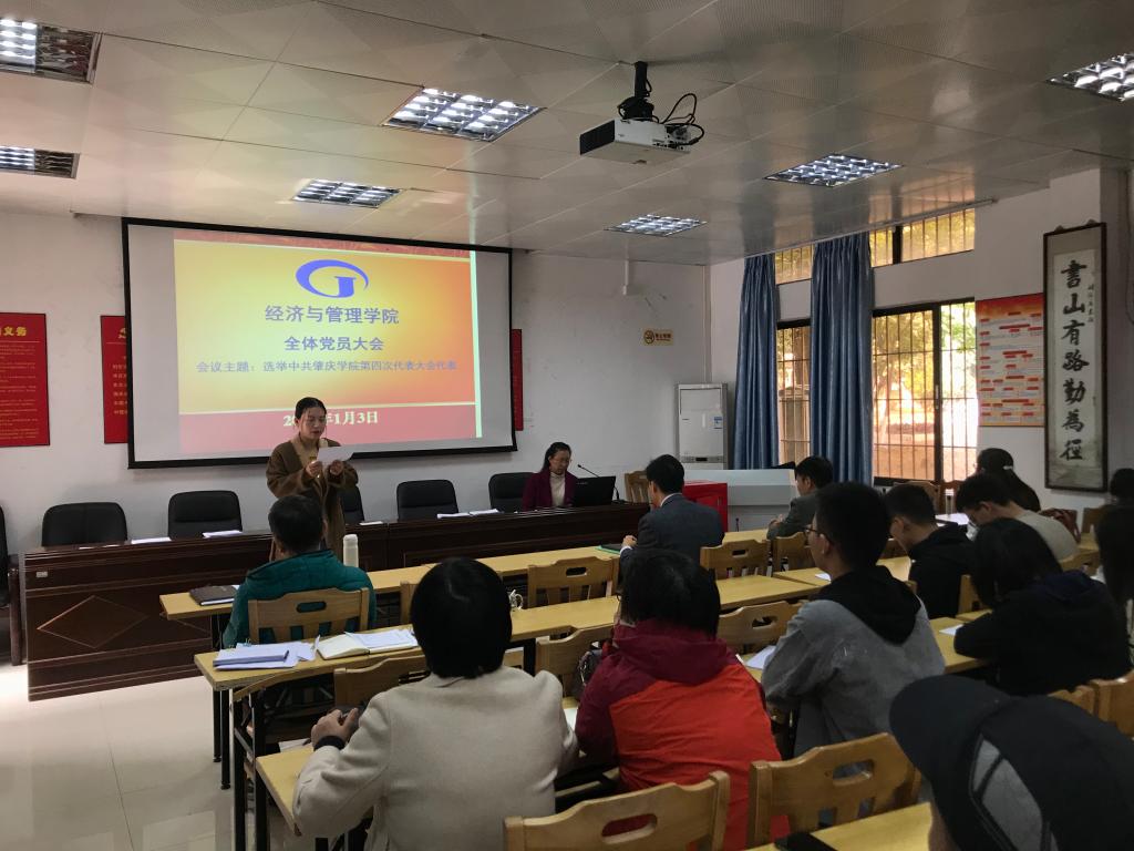 本次选举大会由学院党委副书记颜春萍主持。大会首先由叶青老师宣读学校党委关于候选人预备人选的批复及选举办法。之后,大会通过了经党委会议研究提出的总监票人、监票人、计票人名单。最终,到会的79名党员以无记名投票的方式,从9名候选人中差额选举产生7名中共肇庆学院第四次代表大会代表。名单如下(以姓氏笔画为序):龙镇辉、田苗、刘璟、吴晓宜、雷洪、黎天宇、颜春萍。