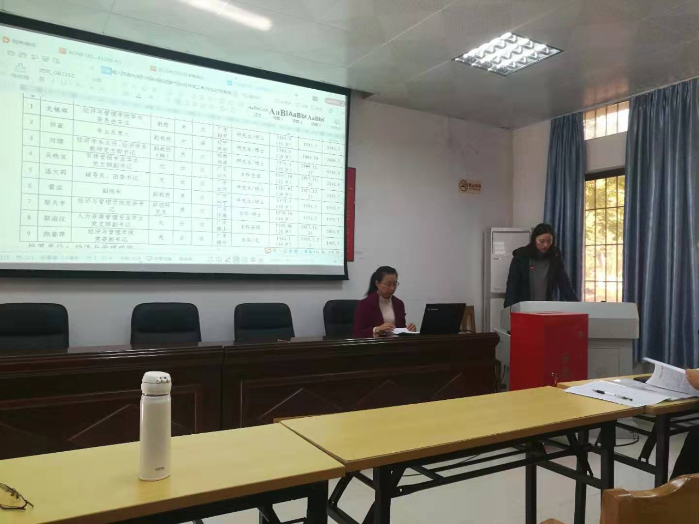 叶青老师宣读学校党委关于候选人预备人选的批复及选举办法