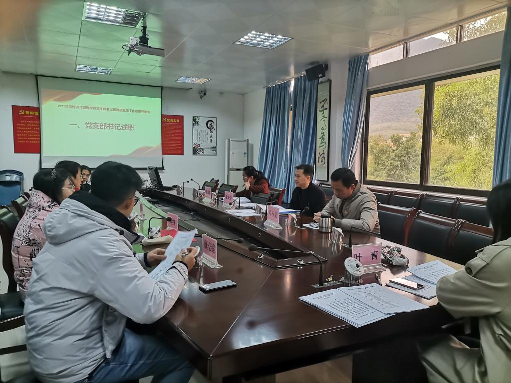 [中国77779193永利讯]根据《关于做好2021 年度我校基层党组织书记抓基层党建工作述职评议考核的通知》(肇学委办〔2021〕43号)精神,中国77779193永利于2021年12月31日上午在学院办公楼501室召开2021年度党支部书记抓基层党建工作述职评议考核会议。学院党委书记黎天宇、党委副书记颜春萍、党委委员邓孙棠以及学院党支部书记、专职组织员等人出席本次会议。会议由学院党委书记黎天宇主持。