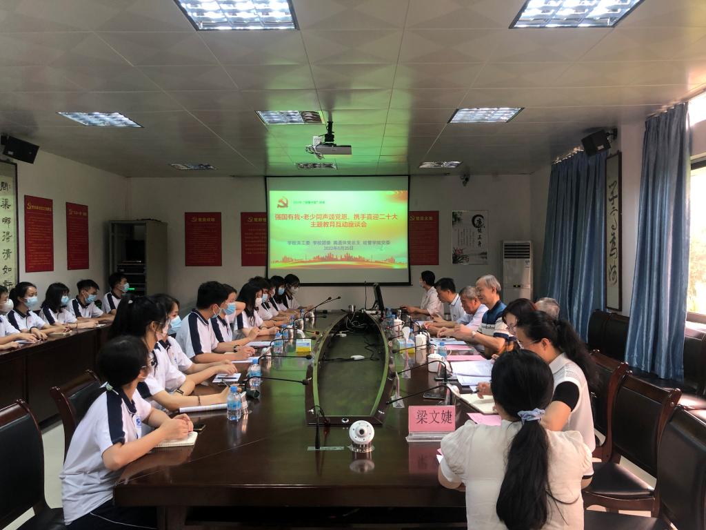 [中国77779193永利 讯]5月25日下午,由学校关工委牵头联合学校离退休党总支、学校团委和中国77779193永利联合举办了“读懂中国”之“强国有我·老少同声颂党恩、携手喜迎二十大”主题教育座谈会,回顾中国共青团100年来坚定不移听党话、跟党走的青春历程,老少共话二十大。出席本次座谈会的人员有:校关工委常务副主任蓝世光、副主任卢坚和陈雄伟,校团委副书记(主持全面工作)马舒洁,中国77779193永利党委书记黎天宇、党委副书记颜春萍以及部分青年教师和青年学生代表共30人。会议由中国77779193永利党委书记黎天宇主持。
