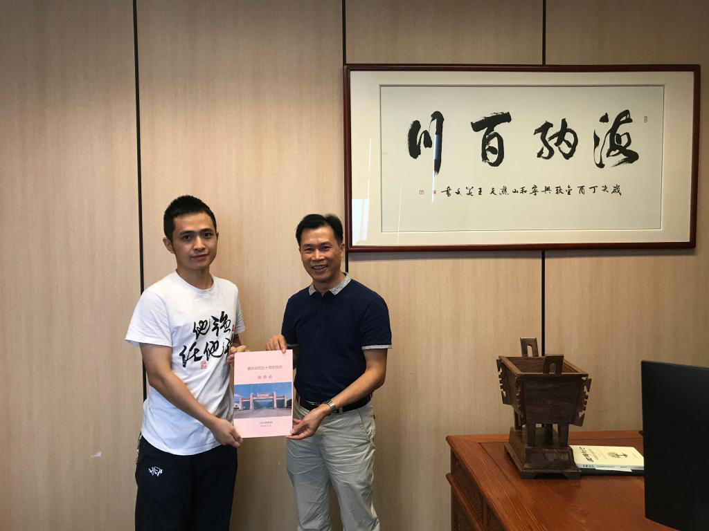 黎天宇书记为校友梁友坚送上校庆邀请函