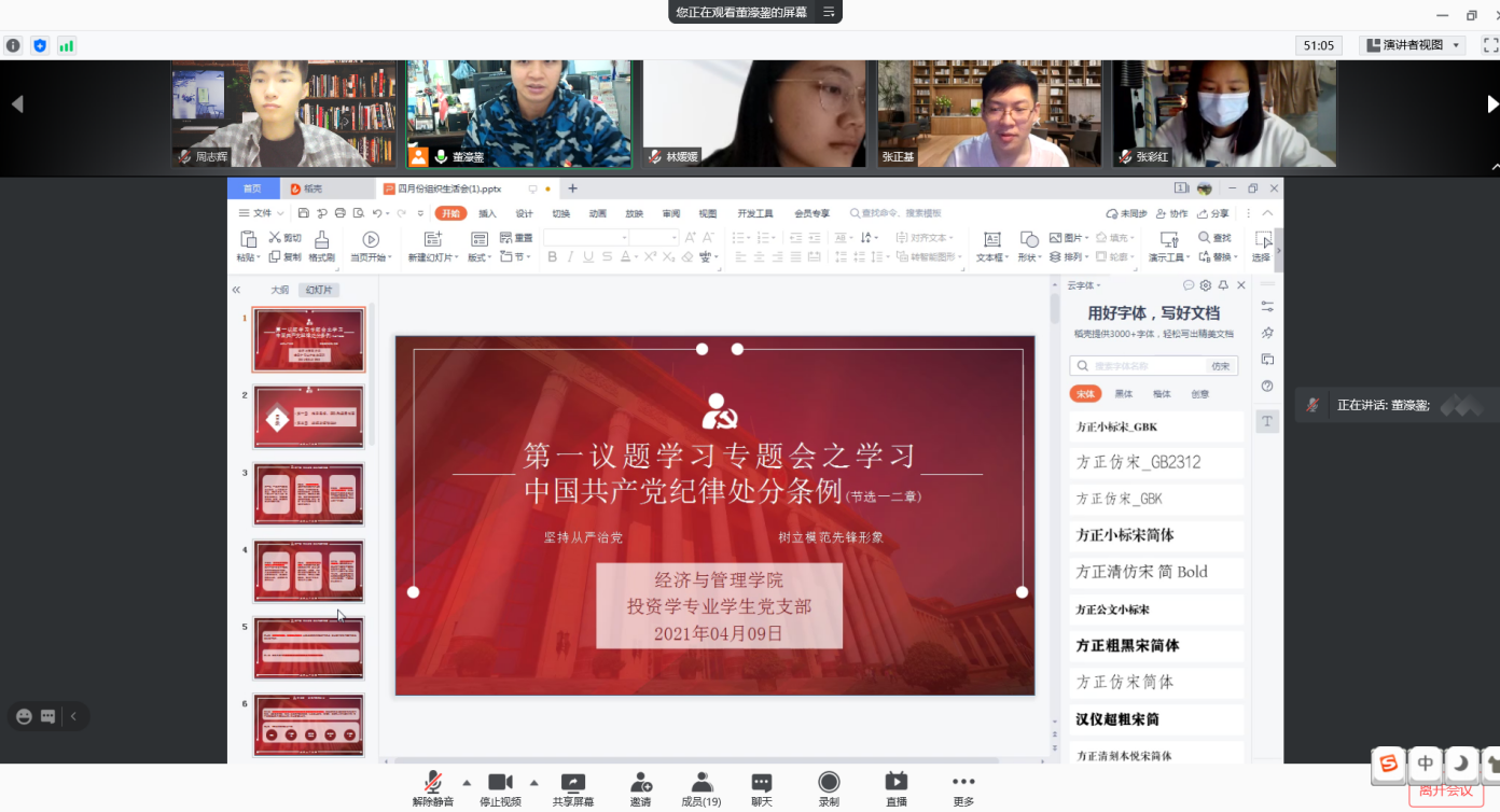 4月份投资学专业学生党支部学习《中国共产党纪律处分条例》