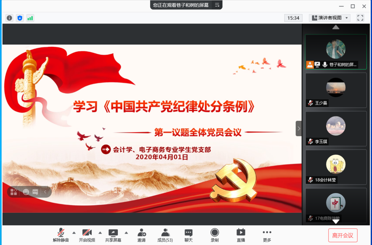 4月份会计学、电子商务专业学生党支部学习《中国共产党纪律处分条例》