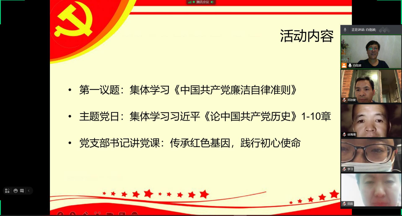 学院党委每个月都会印发党支部开展组织活动的通知,通过“第一议题”学习的方式制订当月学习主题,组织各支部学习党内法规,以党章、准则、条例为重点,结合近年来中央出台的党内法规,选择与本单位工作职能息息相关的党内法规,有针对性地进行学习。从今年3月起至今,学院党委每月都统一布置各党支部“第一议题”专题学习党内法规,分别是3月份学习《中国共产党章程》,4月份学习《中国共产党纪律处分条例》,5月份学习《中国共产党廉洁自律准则》。共计422人次党员参与了学习,学院党委共计派发学习资料《中国共产党章程》220本。