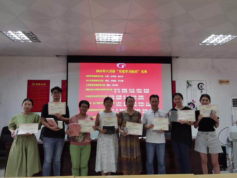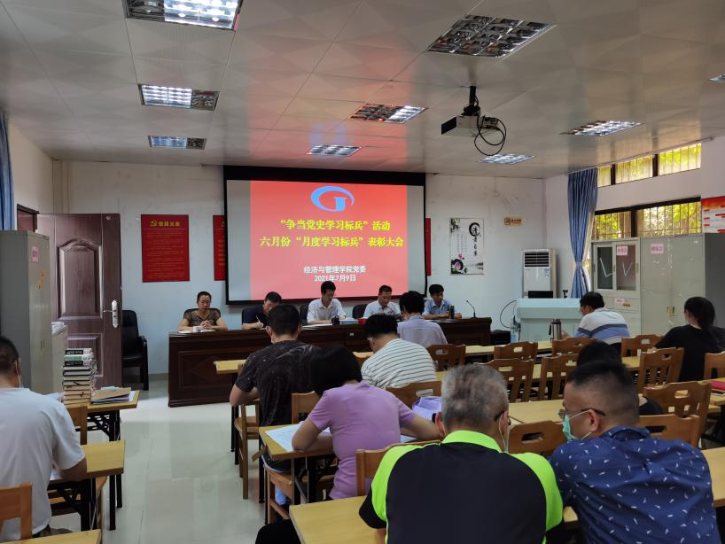 [中国77779193永利讯]2021年7月9日下午,中国77779193永利召开“争当党史学习标兵”六月份“月度学习标兵”表彰大会,对荣获六月份“月度学习标兵”的师生党员及入党积极分子进行了表彰。出席本次大会的有学院党委书记黎天宇、学院院长刘玉勋、学院党委副书记颜春萍、学院副院长雷洪、学院副院长崔彩周、各支部书记和教师党员。