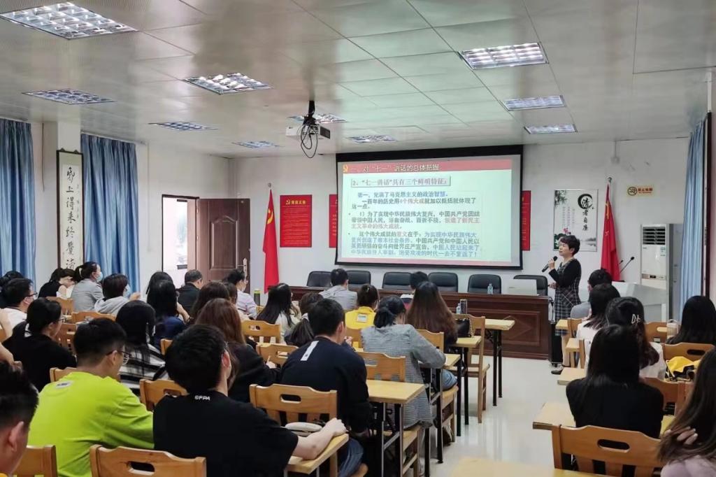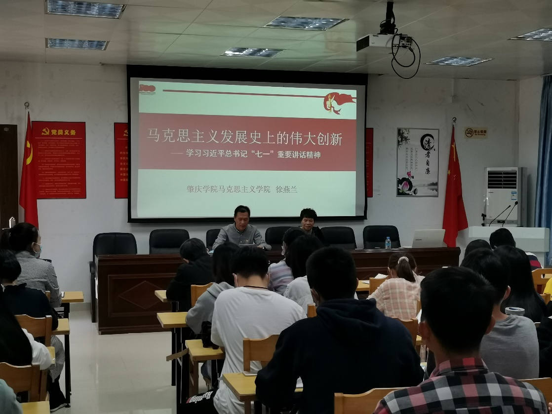 [中国77779193永利 讯]为深入学习贯彻习近平总书记在庆祝中国共产党成立100周年大会上的重要讲话精神,推动党史学习教育深入开展,根据肇院史学办通〔2021〕24号《关于做好深入学习贯彻习近平总书记在庆祝中国共产党成立100周年大会上重要讲话精神专题宣讲工作的通知》要求,我院于10月26日特邀学校党史学习教育宣讲团讲师、马克思主义学院教授徐燕兰老师开展题为“马克思主义发展史上的伟大创新-学习习近平总书记在庆祝中国共产党成立100周年大会上的重要讲话”专题讲座。学院党员领导干部、教师党员、学生党员等共56人到场聆听。