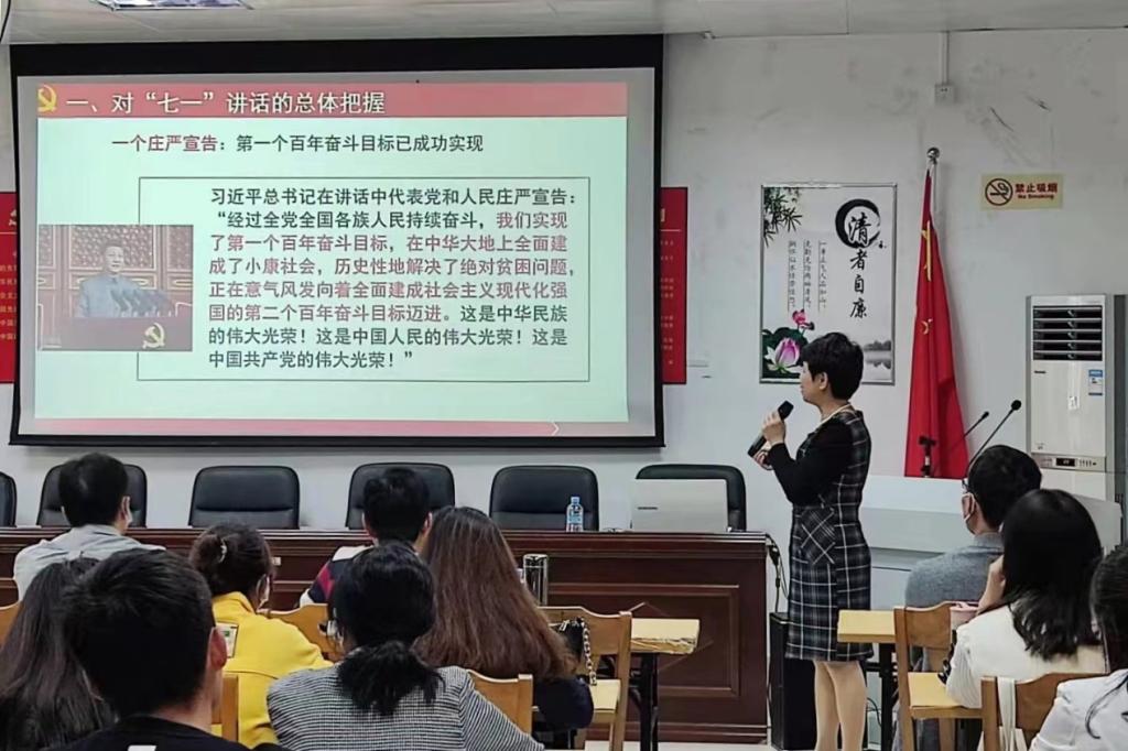 徐教授的宣讲包括四个方面的内容:一是“从总体上把握‘七一’讲话的主要精神”,二是“‘七一’讲话的若干重大理论创新”,三是“以史为鉴,开创未来”,四是“奋勇前进,不负人民”。徐燕兰教授结合自身理论研究,围绕一个鲜明主题、一个庄严宣告、一个伟大精神、四个伟大成就等方面,在总体上对“七一”讲话进行讲解,并对“七一”讲话的若干重大理论创新进行了系统讲解和深入阐释,有重点地讲解了伟大建党精神是中国共产党精神谱系的源头。之后徐老师引经据典,就如何学习好“七一”讲话精神阐明了自己的看法。徐老师用通俗易懂、生动活泼的言语带领大家学习“七一”重要讲话精神,让大家领会了“坚持真理、坚守理想,践行初心、担当使命,不怕牺牲、英勇斗争,对党忠诚、不负人民”伟大建党精神的深刻内含和深远意义,有利于大家快速清晰地把握“七一”重要讲话要点。最后徐老师深刻阐明了当代青年的责任担当对于我国实现第二个百年奋斗目标的重要性,激励青年一代砥砺前行,不懈奋斗。徐教授本次讲座主题鲜明、重点突出、脉络清晰、逻辑严谨、观点正确、深入浅出,对于我们深入学习贯彻习近平总书记“七一”重要讲话精神,开展好党史学习教育具有很强的指导作用,现时也让大家受到了一次党性锤炼和思想上的洗礼。
